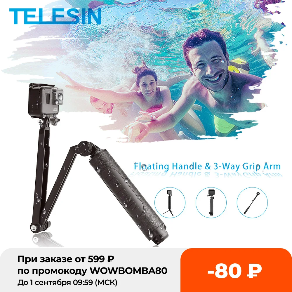 TELESIN Waterproof Selfie Stick Floating Hand Grip + 3-Way Grip Arm Monopod Pole Tripod for GoPro 9 8 7 6 5 Insta360 Osmo Action