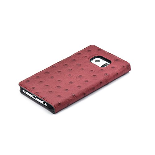 TELLUR Custodia Protettiva Magnetico, Stampa di Struzzo, in Vera Pelle per Samsung S6 Edge, Rosso