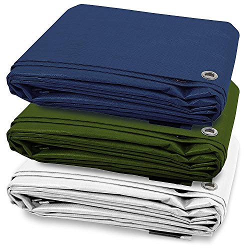 ETM® - Telone impermeabile con occhielli, protezione per esterno, resistente all'acqua e ai raggi UV, molto spesso, densità 260 g/m², misure e colori a scelta, blu