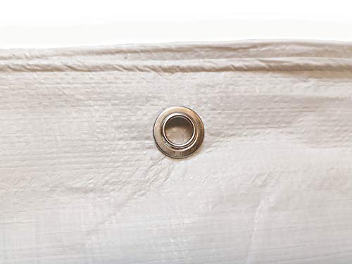 Telone rinforzato impermeabile con occhielli in acciaio inox, per legna e oggetti da giardino, veicoli, protezione dai raggi UV, 90 g, 5 x 8 m, colore: bianco