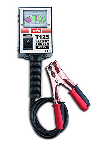 Tester per batterie modello T125 (cod. 802780) Telwin utilizzato principalmente nelle officine per verificare lo stato di salute della batteria di ogni tipo di veicolo: auto, moto, camion, camper, furgoni.