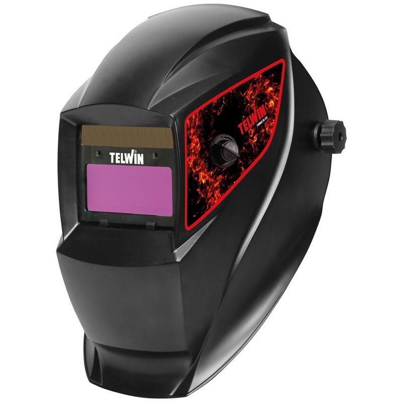A casco. adatta per la saldatura mma, mig-mag e tig, con regolazione dell'oscuramento (din 4/9 ÷ 13). filtro a cristalli liquidi lcd che si oscura automaticamente allo scoccare dell'arco della saldatura e ritorna rapidamente trasparente quando l'operazio
