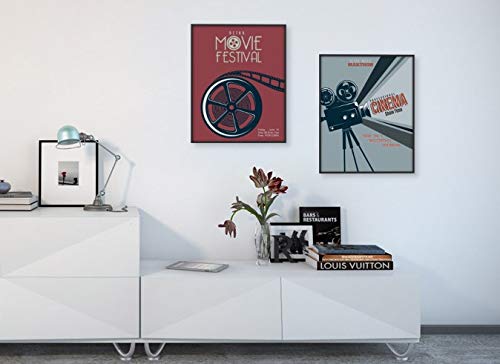 TemaDecor - Cornice Decorativa da Parete in Plastica con Vetro in Plexiglass, Cornici Portafoto 40x50 cm, Antiriflesso, Ottima Qualità, Galleria a Parete, Cornice Colore Nero (Cinema)