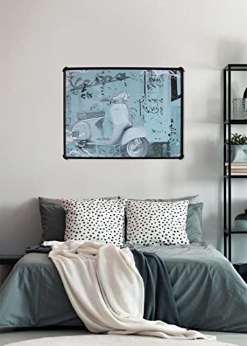 TemaDecor - Quadro Moderno Stampa su Tela Canvas Intelaiato - Cornice in Metallo - Stile Industriale - Arredo per Soggiorno Camera da Letto Cucina Ufficio Studio Ristorante - 60x80 cm - (Moto Vintage)
