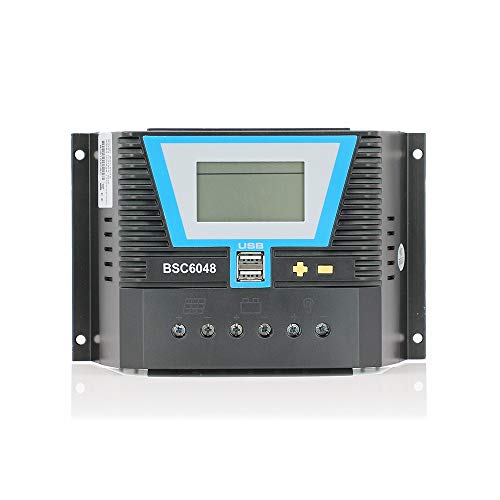 Temank 60A Regolatore di Carica Solare Auto 12V 24V 36V 48V Regolatore Solare con Display LCD, Adatto per il Sistema di Generazione di Energia Solare Fuori Rete Domestica, Lampione Solare