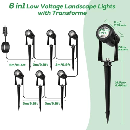 ️ Faretto LED bianco caldo di alta qualità che garantiscono un'illuminazione efficiente e stabile. Con 6 luci da 3 W e una potenza di 450 lumen, puoi risparmiare il 90% di energia. Risparmia energia per te stesso e l'energia per il pianeta. Il vetro ad alta trasmissione della luce può emettere una luce bianca calda da 3000 K, portando così una luce calda e piacevole al tuo giardino, cortile, prato, vialetto del giardino, ecc.