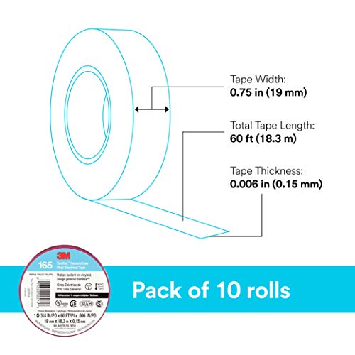3M Temflex 92574 - Nastro elettrico in vinile, 165, viola, 19 mm x 18 m, 10 rotoli