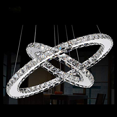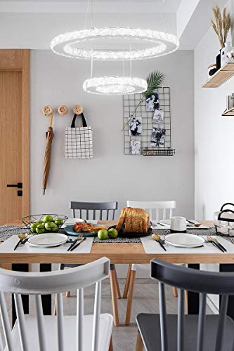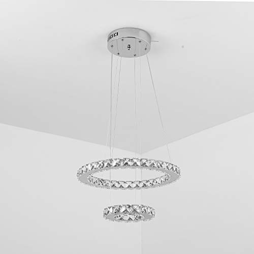 Temgin Lampadario di cristallo LED 2 anelli (40 cm + 20 cm) Lampada a sospensione 36 W Altezza regolabile Lampada da soffitto moderna per sala da pranzo Cucina Corridoio Bianco freddo