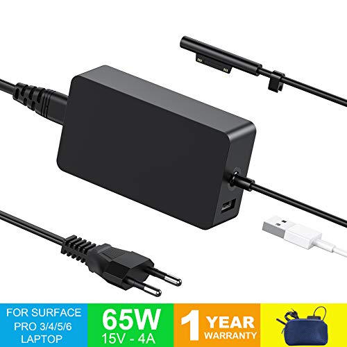 TEMINICE Caricatore Surface Pro, Caricatore Surface Pro 3/4/5 e 6, Caricatore Surface Laptop e Surface Go, Alimentatore 15V 4A 65W Compatibile sia per Microsoft Windows Laptop/Tablet (65W)