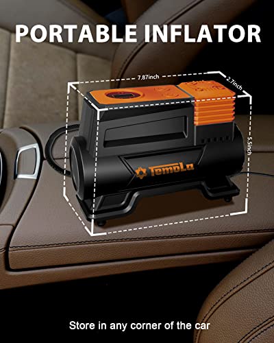 TEMOLA Compressore Aria Portatile, 150PSI Compressore Auto con Manometro, 12V DC Mini Compressore Portatile Accessori Auto Uomini Essenziali con Luce LED per Auto Moto Bicicletta Palloncini