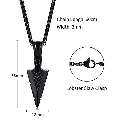 TEMPBEAU Collana Uomo Acciaio Inossidabile Nera Freccia Triangolo Collana con Ciondolo Uomo Nero con Catena da 60cm Fabbricazione di gioielli per Uomo Ragazzo