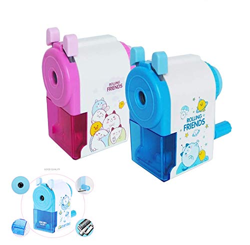 Temperamatite per Bambini Temperamatite Manuale con Contenitore per Bambini Student Artist Professionals 2 Pacchi (rosa e blu)
