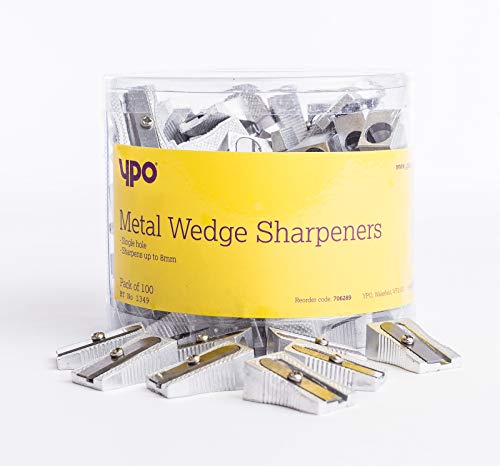 YPO - Temperamatite a cuneo in metallo, foro singolo 8 mm, confezione da 100