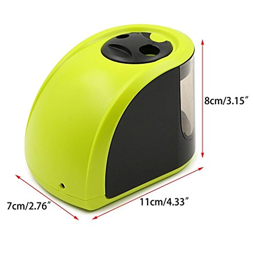 Temperamatite Elettrico, A Due Fori (6-8mm 9-12mm) Batteria o Operato Mains Art Matite Colorate Temperino Sicurezza Bambini Ideale per Scuola in Art Craft Ufficio - Verde