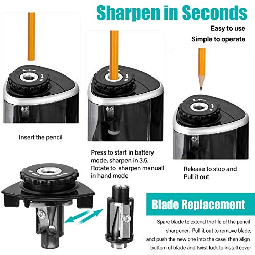 【2 modalità operative】: questo temperamatite con due modalità: automatica e manuale. Se le batterie si scaricano, metti semplicemente l'interruttore in modalità manuale, metti la matita all'interno del temperamatite e ruotala.