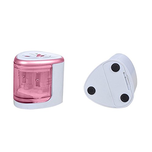 Temperamatite elettrico automatico a batteria, con blocco automatico di sicurezza automatico, lame sostituibili, con due fori da 6/8 mm e 9/12 mm, per bambini, studenti, adulti, artisti Pink