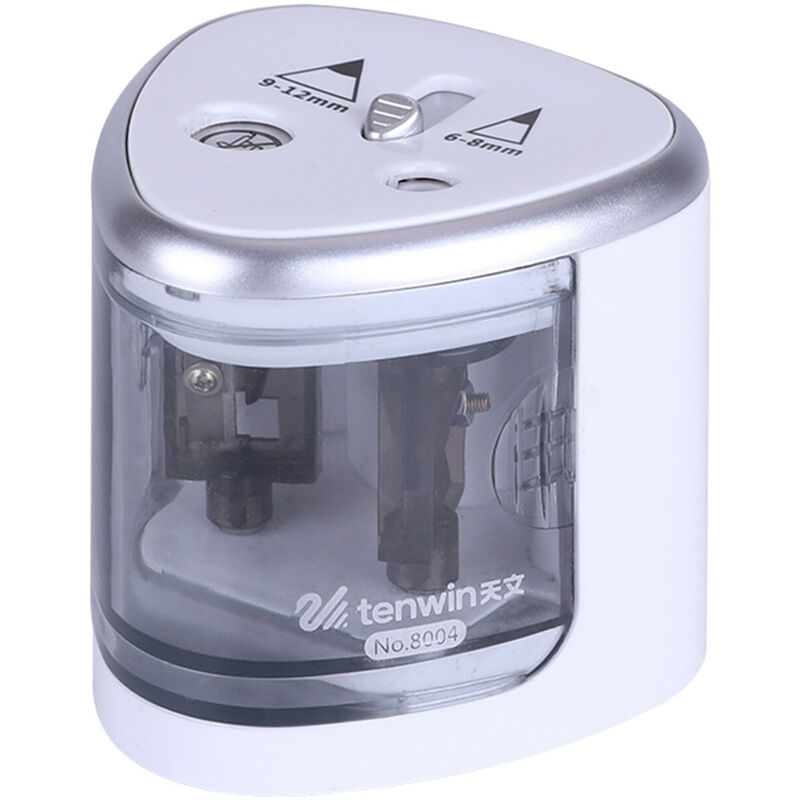 Il temperamatite elettrico portatile automatico a batteria presenta due fori separati di diverse dimensioni (6-8 mm e 9-12 mm) per l'inserimento della matita, il funzionamento automatico facilita l'affilatura. Fornisce una soluzione semplice per il lavoro scolastico e d'ufficio moderno e la tua efficienza lavorativa sarà migliorata. Specifiche: Materiale: plastica Colore: argento Foro: 2 Dimensione matita adatta: 6-8mm / 9-12mm Alimentazione: 4 batterie AA (non incluse) Dimensioni articolo: 7,5 * 7 * 7 cm / 3,0 * 2,8 * 2,8 pollici Peso dell'articolo: 138 g/4,9 once Dimensioni della confezione: 7,8 * 7,8 * 7,8 cm/3,1 * 3,1 * 3,1 pollici Peso della confezione: 158 g/5,6 once Elenco dei pacchetti: 1 * temperamatite Nota: Le batterie non sono incluse. I bambini lo usano sotto la guida di adulti.