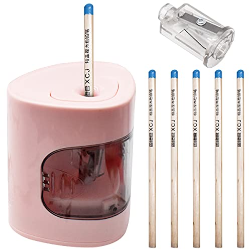 Temperamatite Elettrico,Guador 1 Pezzi Temperamatite Batteria e USB Supporti Moda Antiscivolo Affilatura Manuale ed Elettrica con 5 Matite di Alta Qualità e 1 Portacoltelli di Ricambio (Rosa)