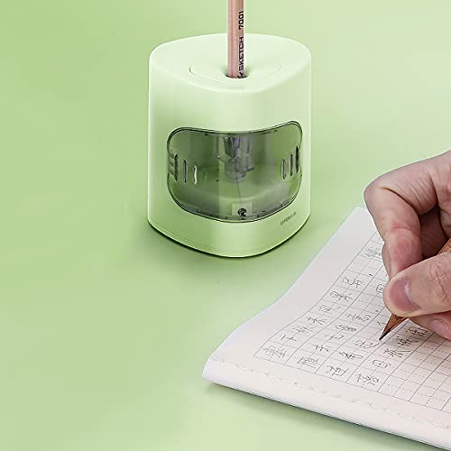 Temperamatite Elettrico,Guador 1 Pezzi Temperamatite Batteria e USB Supporti Moda Antiscivolo Affilatura Manuale ed Elettrica con 5 Matite di Alta Qualità e 1 Portacoltelli di Ricambio (verde)