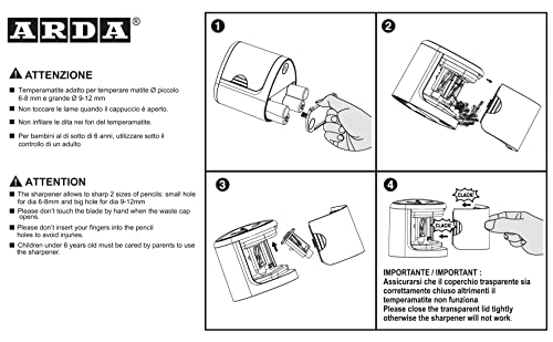 Perfetto come temperino elettrico per bambini e come temperamatite elettrico professionale. Funziona con 4 pile stilo AA non contenute nel prodotto. Ottima idea regalo.