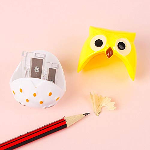 Temperamatite di Gufo,24 PCS Temperamatite Manual Mini Temperamatite Modello Gufo Cartone Animato Temperino Doppio Foro in Plastica Temperamatite con Contenitore per Bambini Studenti Artisti Ufficio