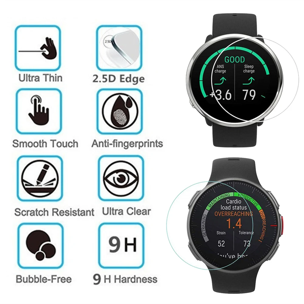 2pcs Tempered Glass 9H 2.5D Premium Screen Protector Film For Polar Vantage M / Vantage V / ignite / M400 / M430 Smart Watch
