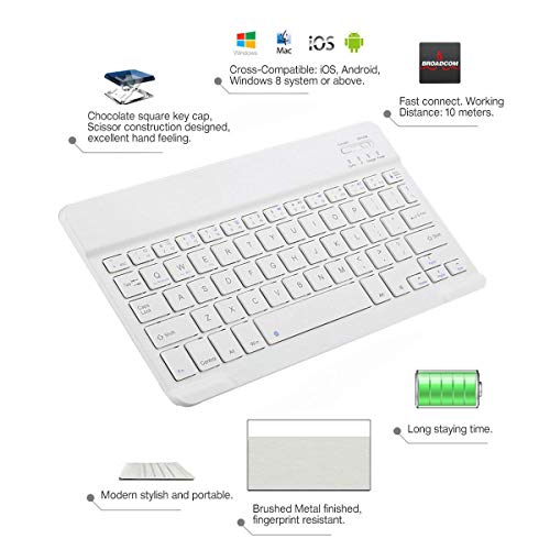 Tempo QWERTY Italiano Layout Tastiera Wireless Bluetooth Keyboard 7" Compatibile Qualsiasi Android/Windows/IOS-Smartphone Tablet,Samsung Galaxy Tab,Google Nexus,Amazon Fire-Bianco