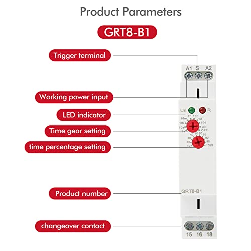 【Intervallo di ritardo temporale super ampio】Intervallo di ritardo super ampio di 0,1 s - 10 giorni, con tensione di lavoro CA / DC 12V-240V.