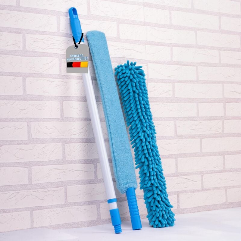 Spolverate in un batter d'occhio con il piumino di Limpando. Il piumino lungo e piatto pone fine alle trappole della polvere in angoli, pareti e, soprattutto, mobili difficili da raggiungere.Per persone allergiche alla polvere, la microfibra che cattura la polvere è una benedizione.Le particelle di sporco e polvere più fini sono attratte magneticamente e non semplicemente sollevate e ridistribuite nell'aria.Il risultato sono armadi, tavoli e altri mobili spolverati in pochissimo tempo.Un vero miracolo della polvere.L'asta con interno in metallo nella testa del piumino può essere piegata più volte intorno agli angoli, liberando anche le aree ad angolo doppio dalla sporcizia.L'asta di metallo permette una pulizia energica senza che la forma si pieghi nuovamente, come accade con molti altri semplici piumini.Gli spazi vuoti e gli angoli degli armadi possono essere puliti più facilmente.Il piumino, grazie all'impugnatura maneggevole, è adatto anche per la temporanea sostituzione di uno