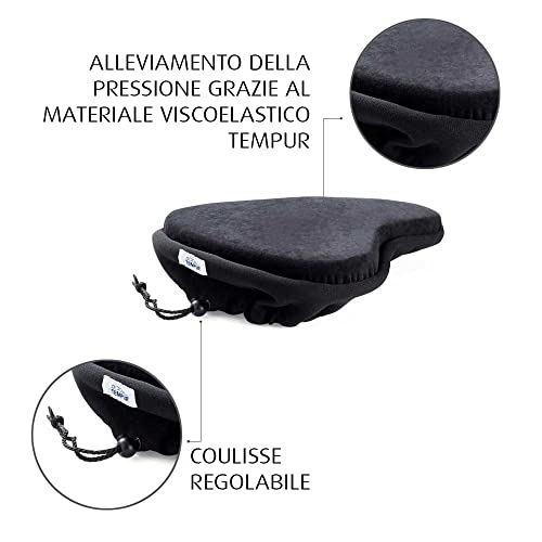 TEMPUR Cuscino per Sella di Bicicletta, confortevole Coprisella Bici Memory Foam per Uomini e Donne, Nero, S