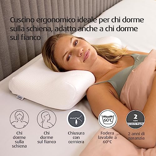 Posizione di riposo: Un cuscino ergonomico dal feeling rigido, pensato per chi dorme sulla schiena ma adatto anche a chi dorme sul fianco