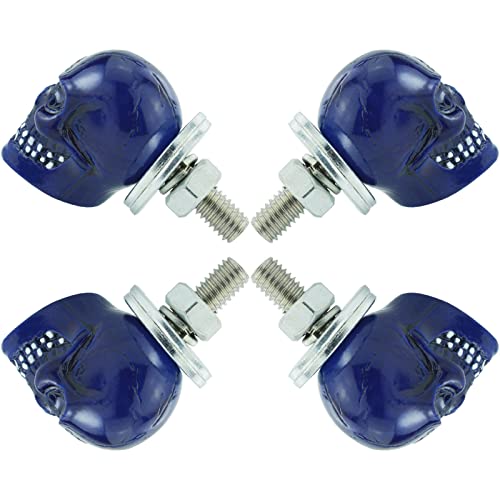 Temzzer Viti per targa a forma di teschio, accessori antifurto per la maggior parte delle targhe per moto, blu (4 pezzi)