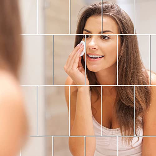 Tenare Fogli a Specchi Flessibili Piastrelle a Specchi Autoadesive Non in Vetro Adesivi a Specchi per Decorazione di Parete di Casa (16 Pezzi, 4 x 6 Pollici)