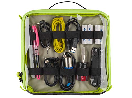 Unica custodia a 2 lati ha un lato profondo per caricabatterie, adattatori e microfoni lavaliere e un lato poco profondo per cavi e piccoli oggetti