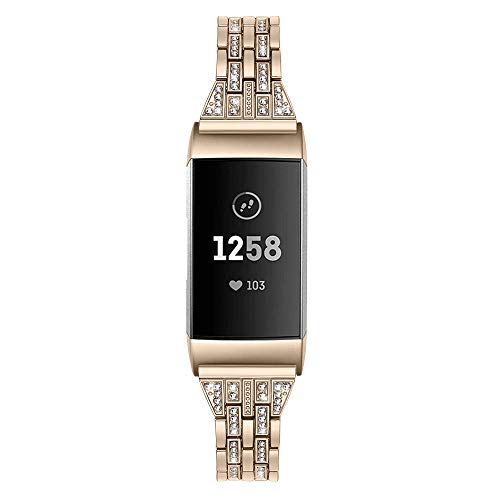 TenCloud, cinturini di ricambio compatibili con Fitbit Charge 4/Charge 3, cinturini in metallo con strass luccicanti per braccialetto da donna per Charge 4/Charge 3 fitness tracker (oro)