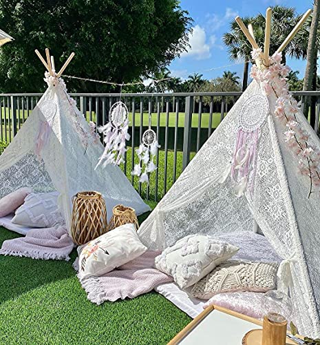 Tiny Land Tenda per Bambini Teepee per Bambini all'aperto al Coperto Tenda per Bambini, Tipi di Pizzo Boho (150 cm di Altezza)