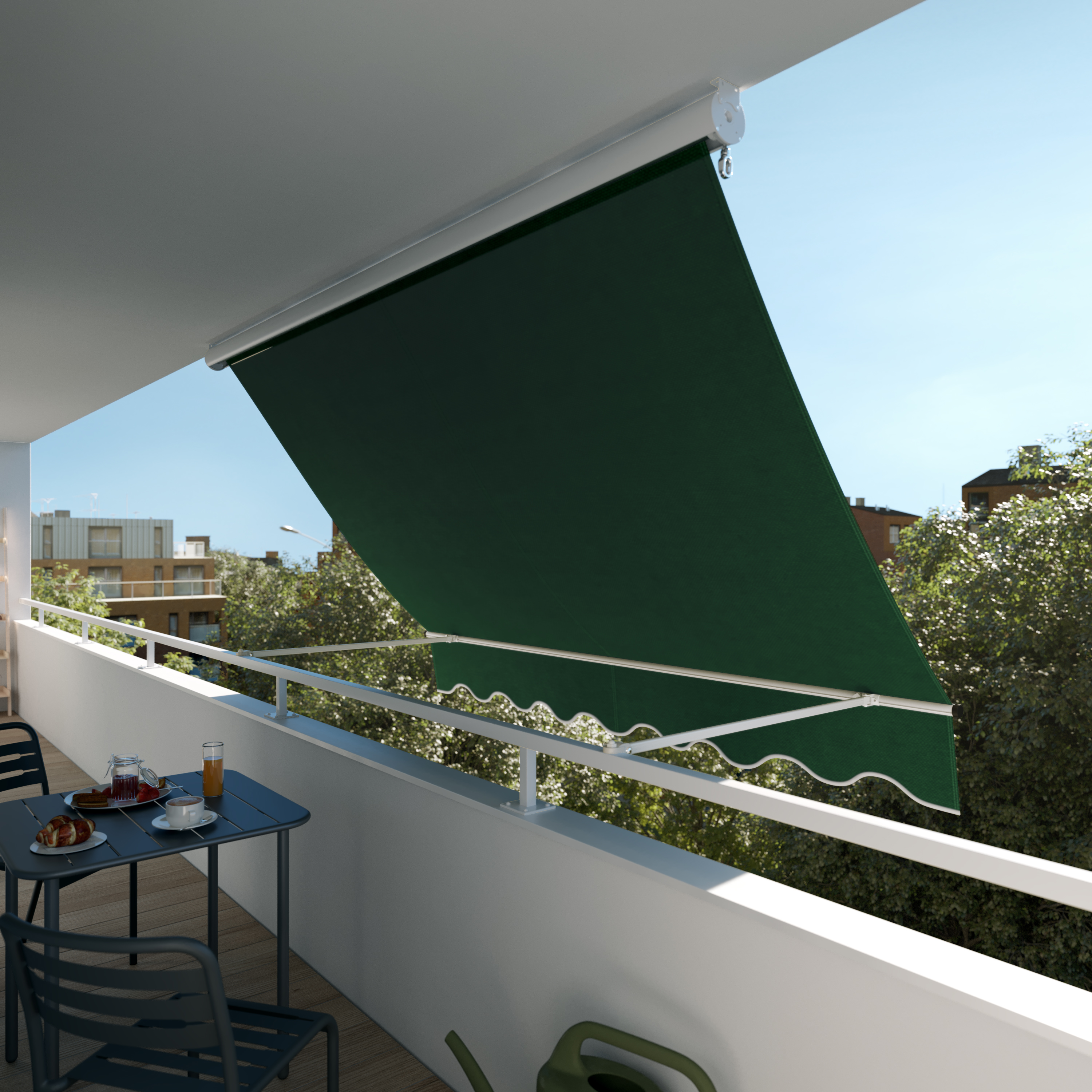 Questa tenda da sole manuale 2,5x2,5 metri è perfetta per creare uno spazio di vita all'esterno di un appartamento su un balcone proteggendosi dal sole. Grazie alla sua inclinazione, questa tenda da sole Naterial appositamente adatta per balconi offre privacy nascondendo la vista del vicinato. Grazie al suo tessuto in poliestere, questa tenda da sole è adatta per l'esposizione al sole alcune settimane all'anno. In caso di pioggia moderata, il telo lascia scorrere l'acqua senza penetrare. Si adatta a tutte le situazioni e può essere installato a parete o a soffitto. Pratica e accessibile, questa tenda da sole da balcone manuale è dotata di manovella ed è facile da installare.