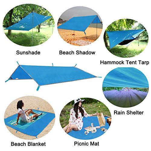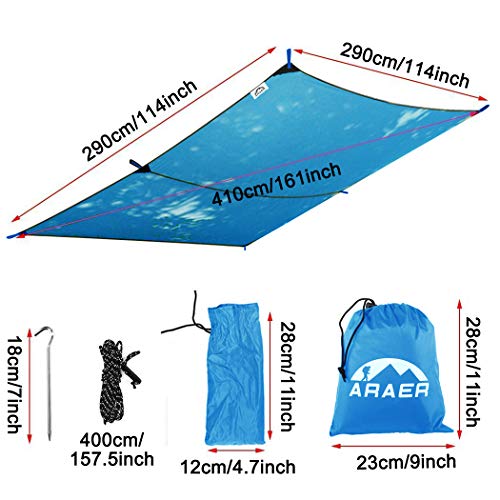 【Grande e facile da montare】: grandi dimensioni 114 x 114 x 24 m, leggero solo 600 g, con 8 tiranti e 4 picchetti in lega di alta qualità. Installare il telo in pochi minuti. 9 fori di fissaggio, comodo per regolare la sua forma in base alle varie condizioni geografiche.