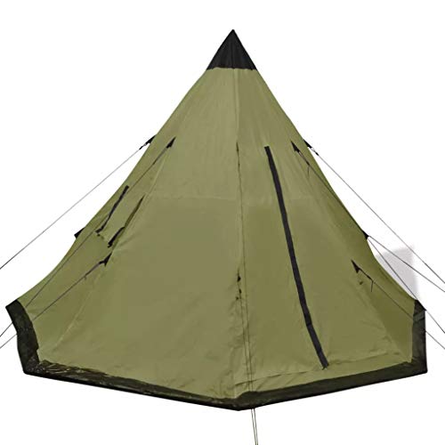 Tenda da campeggio a 4 posti, impermeabile, 365 x 365 x 250 cm, tenda da campeggio con finestre, grande tenda da campeggio portatile, colore verde