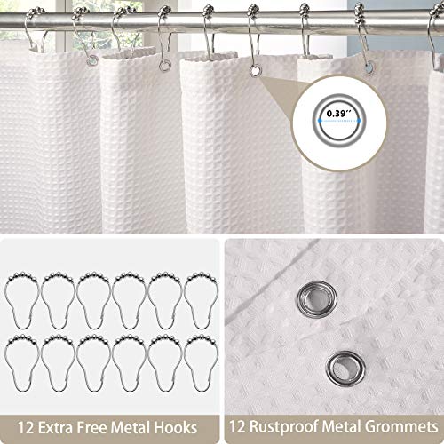 Tenda da doccia per bagno con ganci in metallo Tessuto a nido d'ape Tenda da bagno resistente per stanza bagnata Vasca da bagno Box doccia, orlo ponderato, resistente all'acqua - 182 x 214 cm (Bianca)