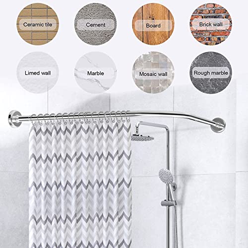 Asta per tenda da doccia a forma di L in acciaio inox inox curvato - 75-175 cm - sistema 4 in 1-24 anelli gratuiti, installazione solo foratura, per bagno, negozio di abbigliamento, spazio privato