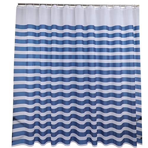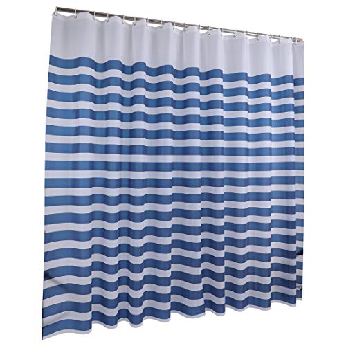 Tenda da doccia impermeabile e antimuffa, tenda da doccia in PEVA blu + bianco, a strisce, 180 x 180 cm, con 12 ganci