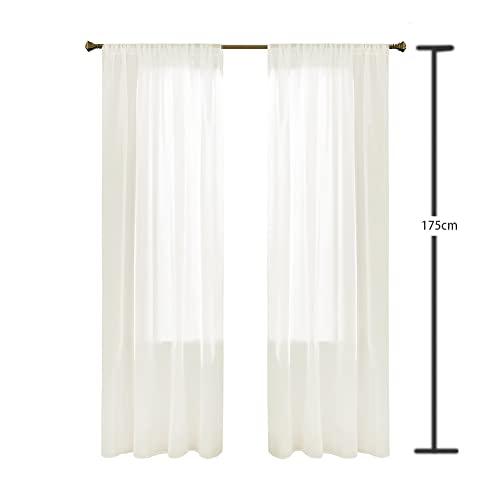 Tenda effetto lino, trasparente, semitrasparente, per finestra, per camera da letto, colore: bianco sporco, Classico., bianco sporco, 2x H/B: 175/140 cm