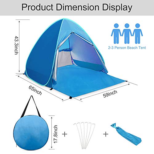 Tenda pop up di QMQ, da esterno, tenda istantanea portatile per 2 - 3 persone, anti UV, da spiaggia e pesca, 145 x 165 x 110 cm, blu