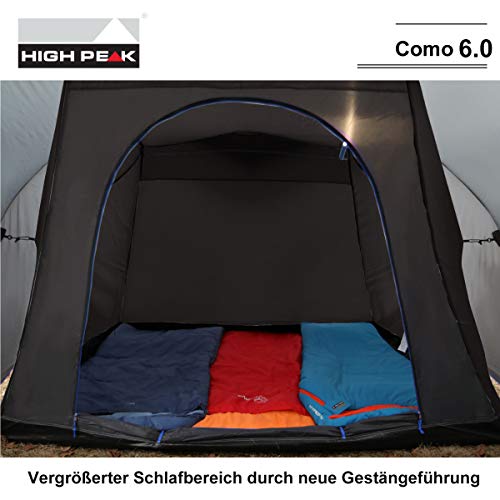High Peak - Tenda familiare per 5 persone, a cupola, resistente al calore, con attacco e 2 ingressi, impermeabile, 3.000 mm, protezione solare UV 80, tenda interna oscurata, colore: grigio Nimbus