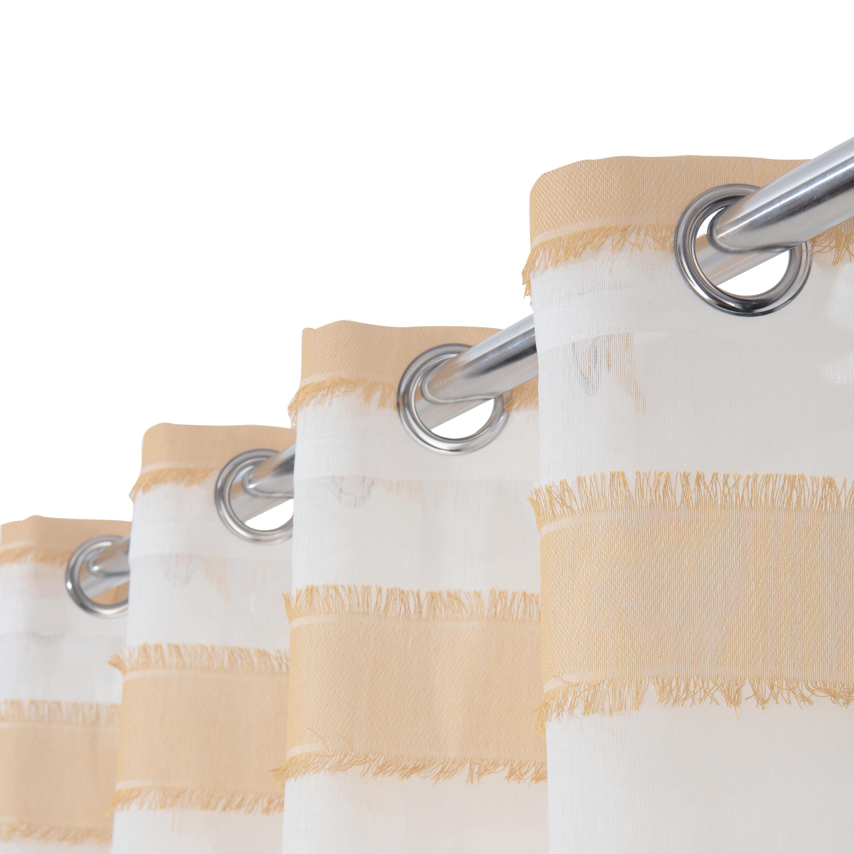 Per una casa accogliente e conviviale, è sufficiente scegliere i toni accesi della tenda Filtrante Terentine da 140x280 cm. Una tenda a righe impreziosisce lo stile dell'ambiente in cui lo si colloca grazie alla texture e alle combinazioni cromatiche. Assolutamente rétro, gioca con le linee neoclassiche che conferiranno un fascino ineguagliabile agli interni.. Le tende semi-filtranti sono perfette se si vuole un ambiente illuminato ma riparato dalla visuale esterna. Questa tenda è interamente realizzata in poliestere. Essendo una fibra sintetica, il poliestere non perde colore facilmente ed è spesso utilizzato per complementi tessili che possono essere lavati senza problemi. La finitura a occhielli permette uno scorrimento facile sul bastone.. Per prendersi cura al meglio della tenda, si consiglia di usare la lavatrice ad una temperatura massima di 30°C. Al termine del lavaggio si potrebbe riscontrare una restrizione massima del 3% del prodotto. Non usare l'asciugatrice, per preservare al meglio le caratteristiche della tenda. Stirare a basse temperature.