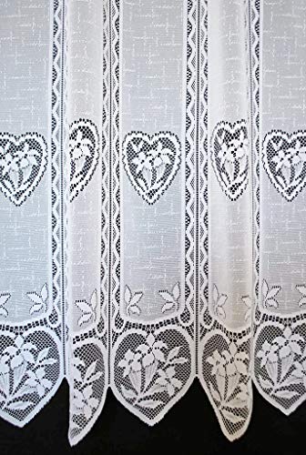 Tenda della finestra Enzian nel cuore altezza 150 cm | Può scegliere la larghezza in segmenti da 11 cm, come vuole | Colore: Bianco | Tendine cucina