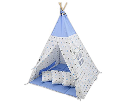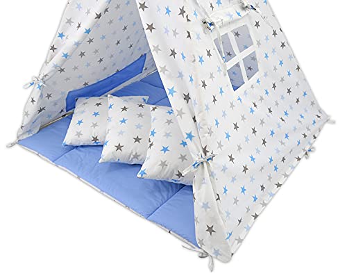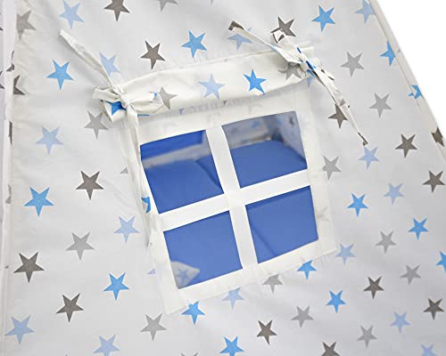 Tipi, tenda da gioco per bambini, tenda da gioco per bambini, tenda con finestra, tenda indiana (tipi_blu/grigia/bianco)
