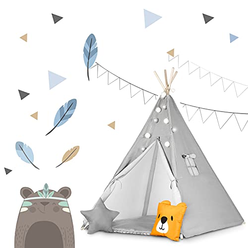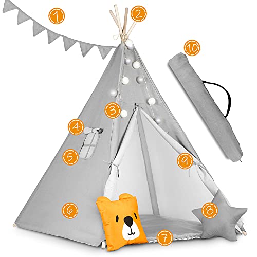 Regalo prezioso per bambini: tenda magica per bambini dal colore grigio carino, design a forma di tipi, particolarmente adatta per leggere, ascoltare musica, dormire e giocare. Una grande tenda da gioco decorativa per ragazzi e ragazze può decorare stanze, giardini esterni, aule o durante una gita in spiaggia.