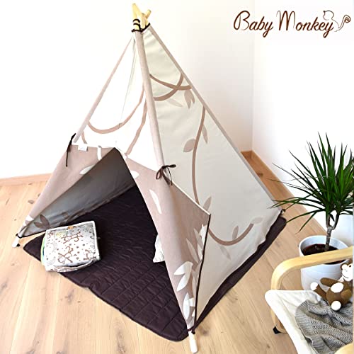 Tenda indiani per Bambini da Gioco Indiana Teepee 100% Cotone, set tenda teepee Marrone
